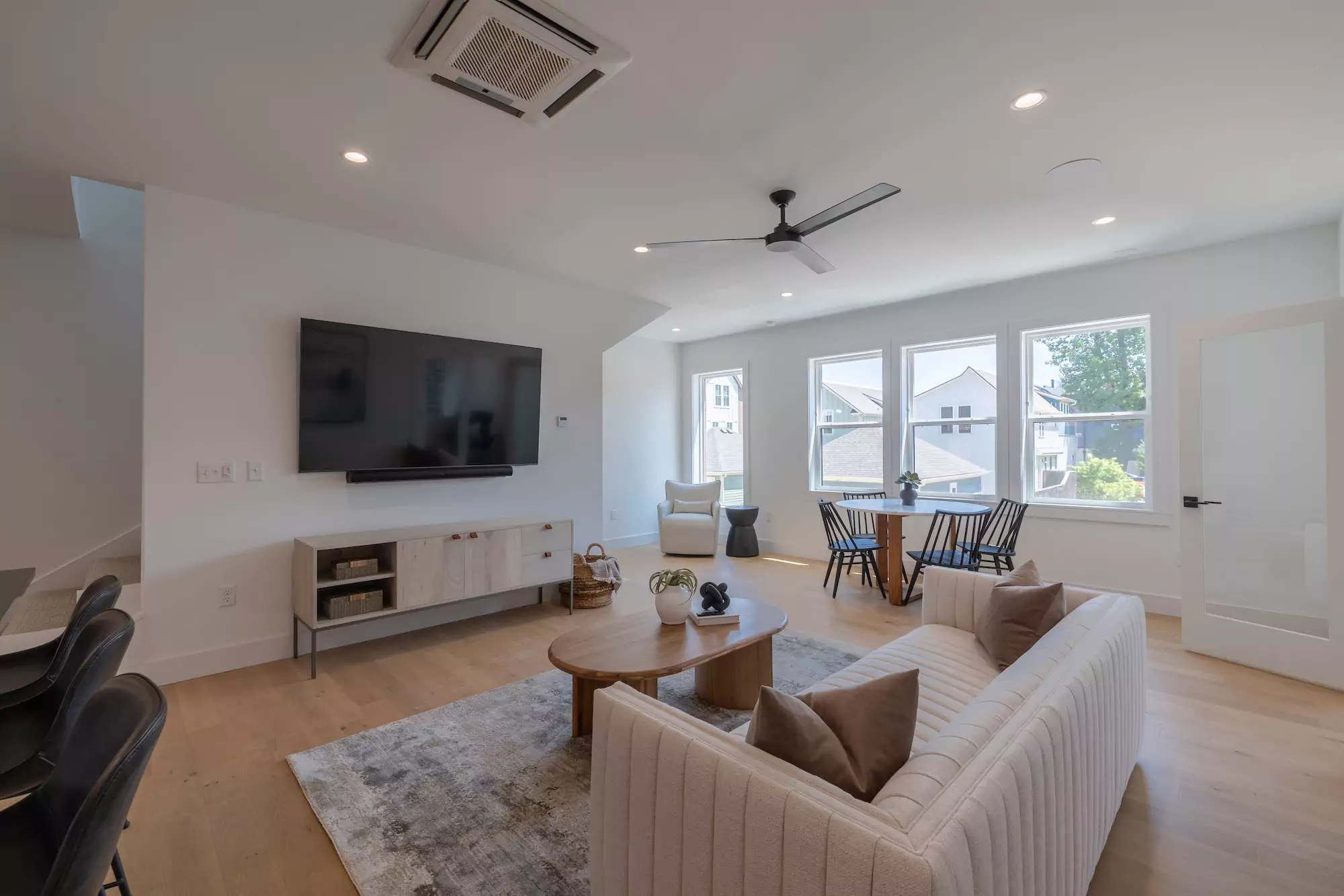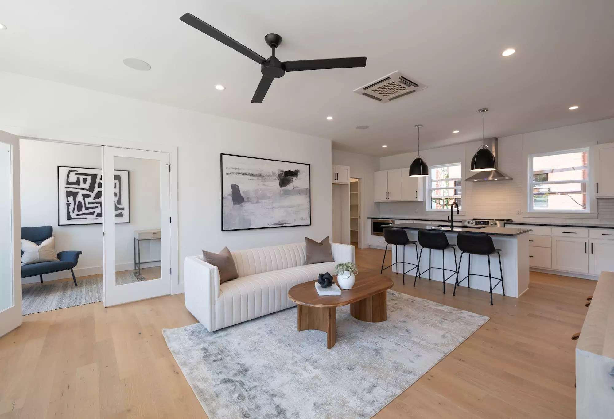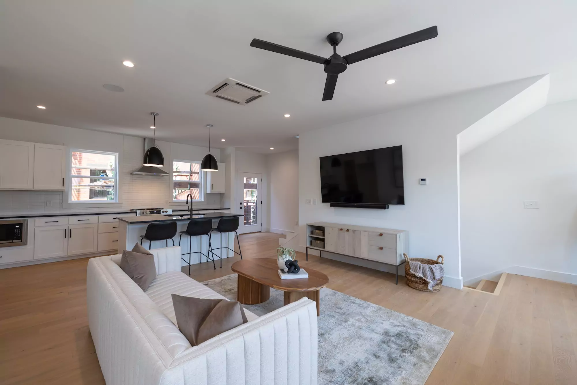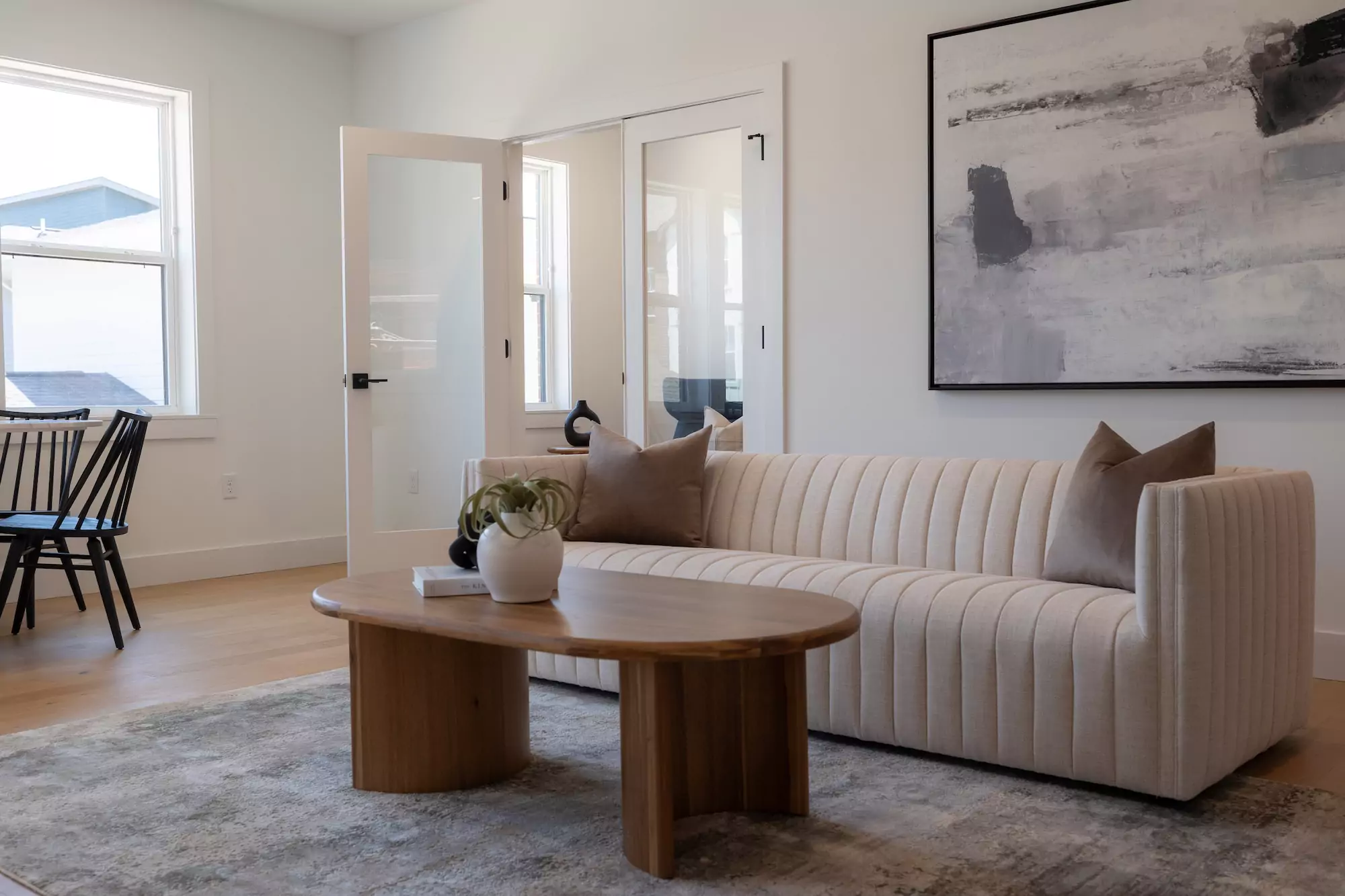 The 24-unit development offers a mix of one-bedroom, two-bedroom, and two-bedroom-plus-office layouts, each designed with spacious, open floor plans. A shared outdoor gathering space enhances community living, creating a welcoming extension of each home.