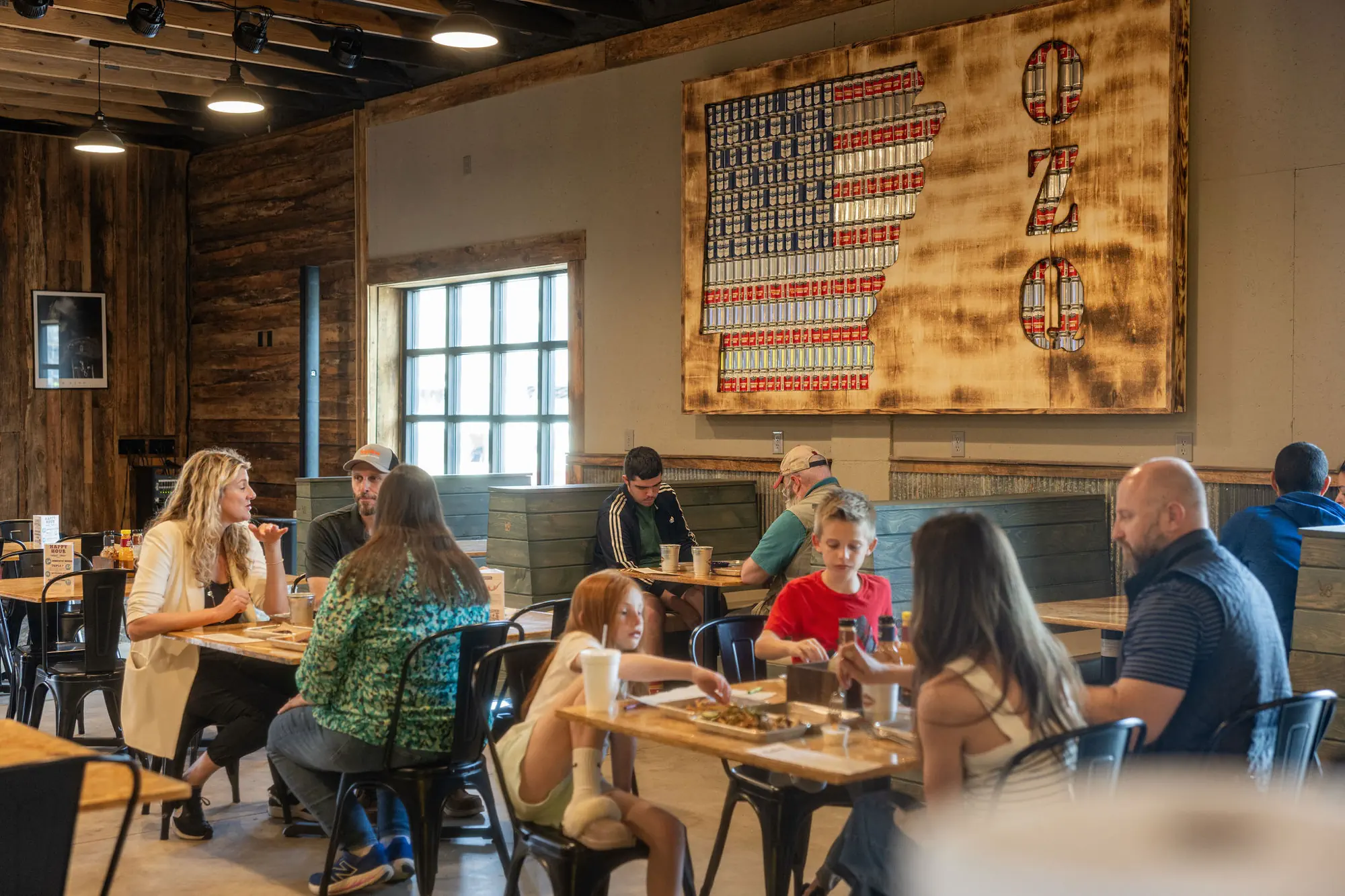 The interior concept extends the ethos of reuse, incorporating salvaged wood crates and pallets to form the back bar and feature walls, echoing the approachable, low-brow aesthetic rooted in traditional barbecue culture. This approach creates a welcoming atmosphere that balances grit with intentional design, reinforcing the authenticity of the dining experience. Paired with flexible indoor-outdoor gathering spaces and game-oriented amenities, the project delivers a lively, communal environment that reflects both the spirit of Arkansas barbecue and the evolving character of downtown Bentonville.