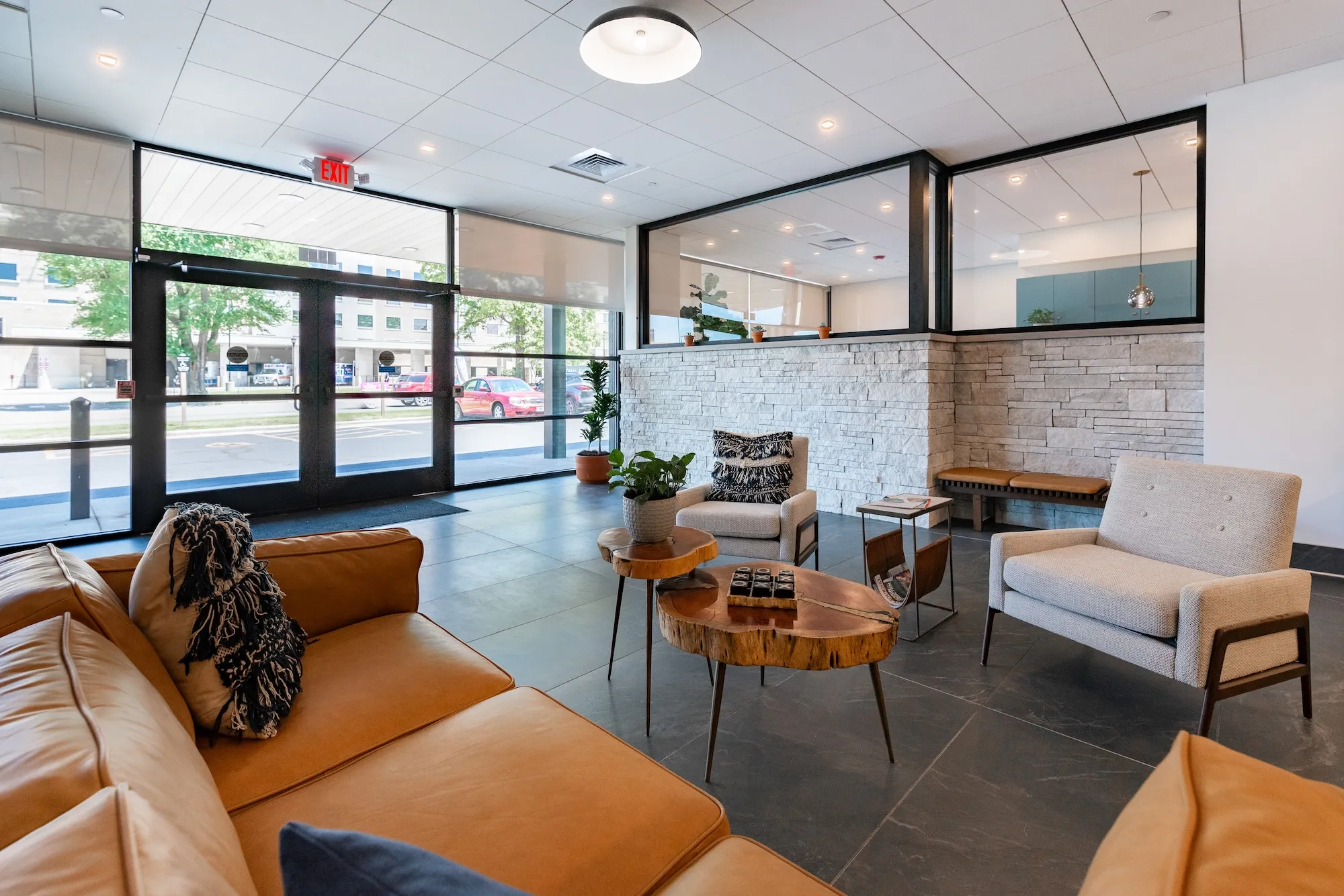 National Workplace is the transformation of an existing senior living facility that had been unused for over a year into a modern workplace office concept in the heart of Springfield, Missouri. A key component of the transformation involved establishing a partnership with a local artist as part of the exterior façade rebrand, bringing new visual identity to the structure. Surrounding development pressure pushed the project into a full interior renovation to maximize the opportunity for new tenants. The design team gave new life to the aging building through comprehensive design elements that converted the former senior living spaces into functional workplace environments.