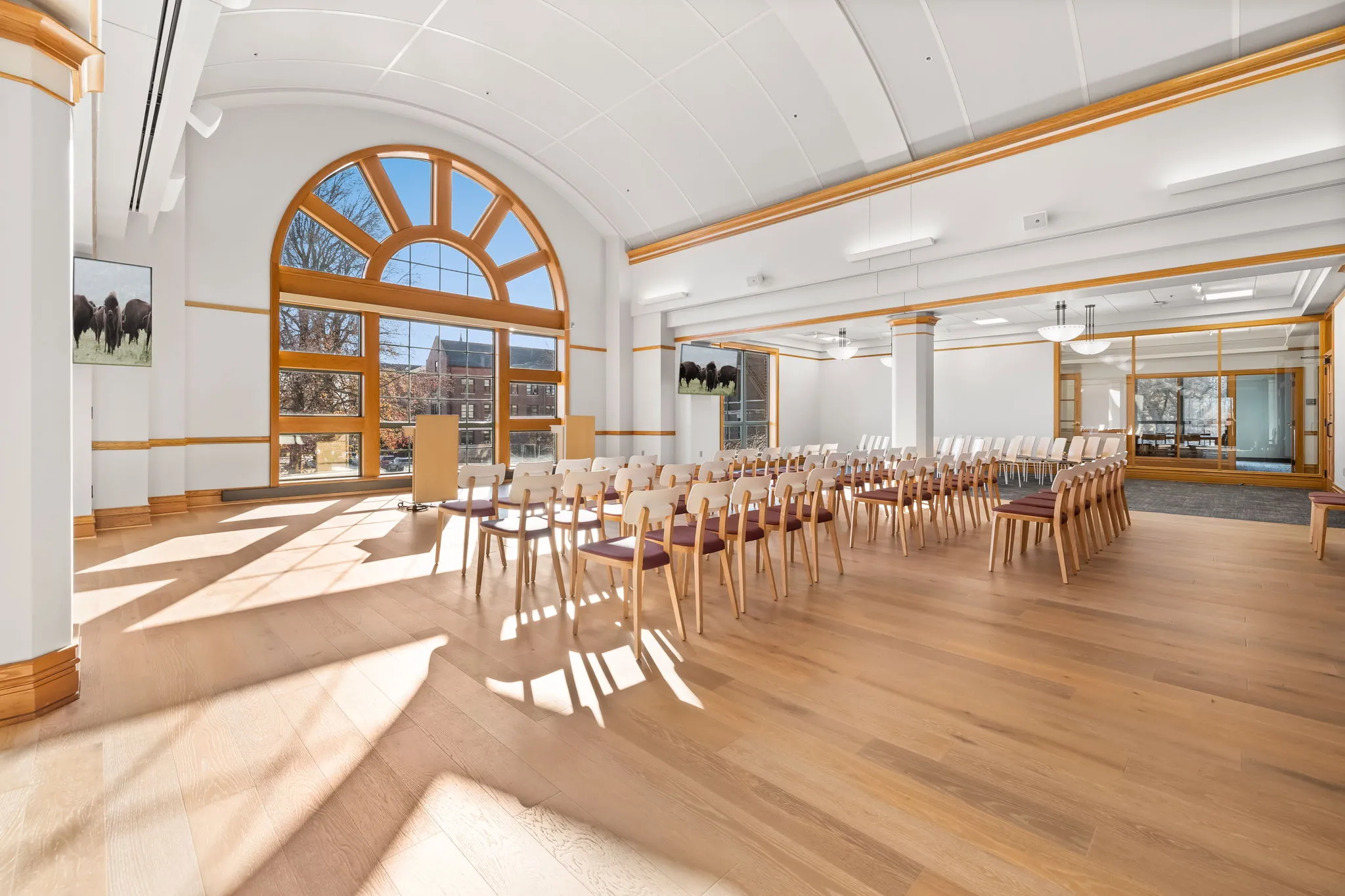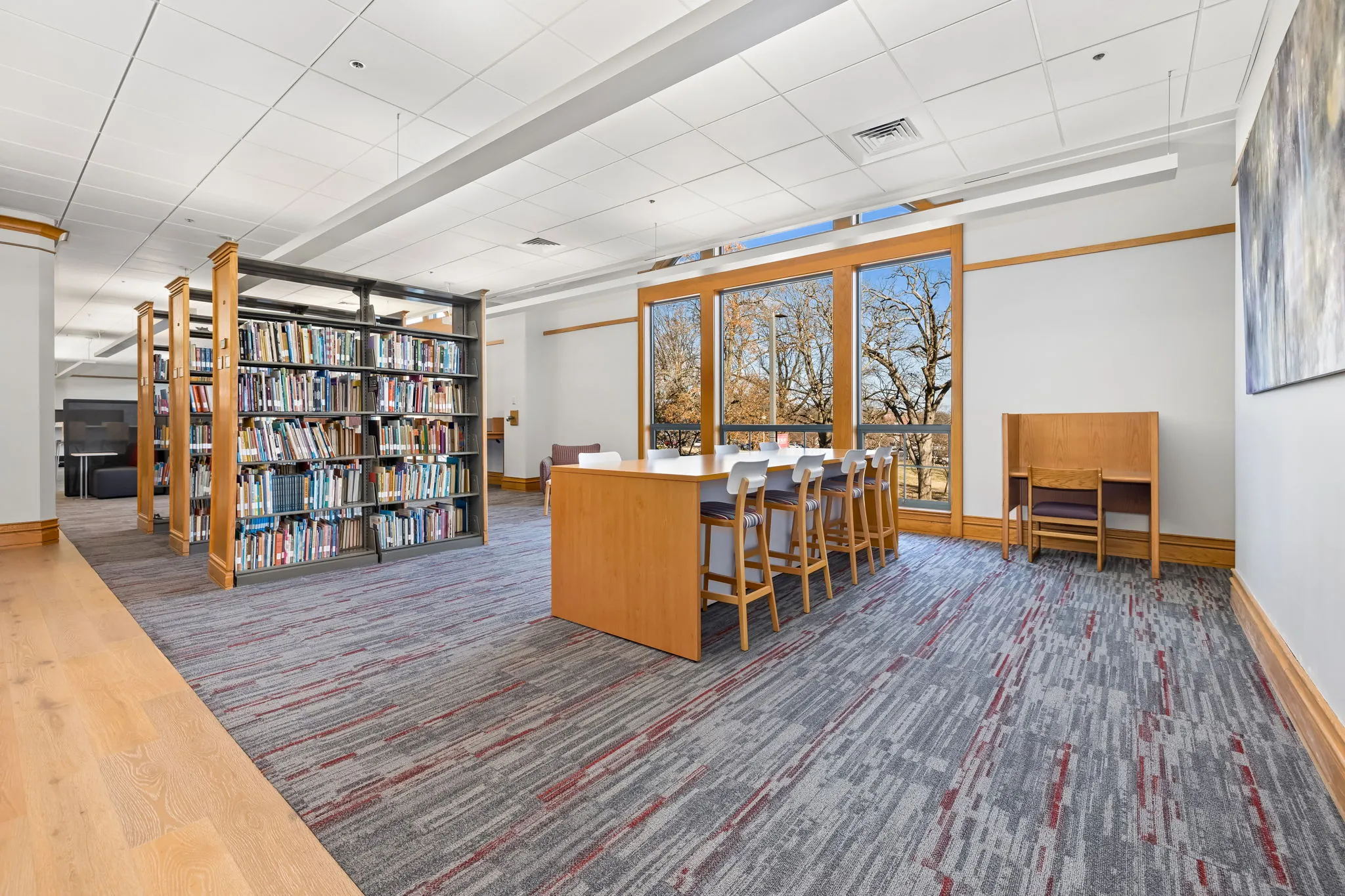Drury University’s Sunderland Lyceum The renovation of the university library’s upper level transformed 26,000 square feet into a modern, functional space. At its core, 2,100 square feet were converted into an enclosed Lyceum designed for debates and presentations. The project also included new flooring throughout, restroom refinishing, and a full paint refresh to enhance the aesthetic and atmosphere.