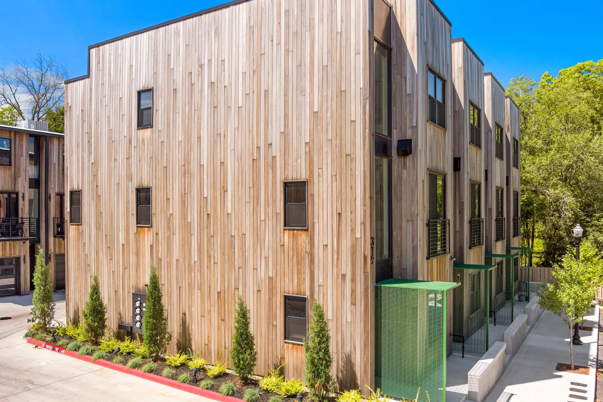 The Trailhead Mews Townhomes in downtown Bentonville is a project brought to life after being left only partially constructed for several years by the previous owners. The design works within the constraints of the existing unit layouts while entirely re-imagining the exterior facade design and new interior finishes.