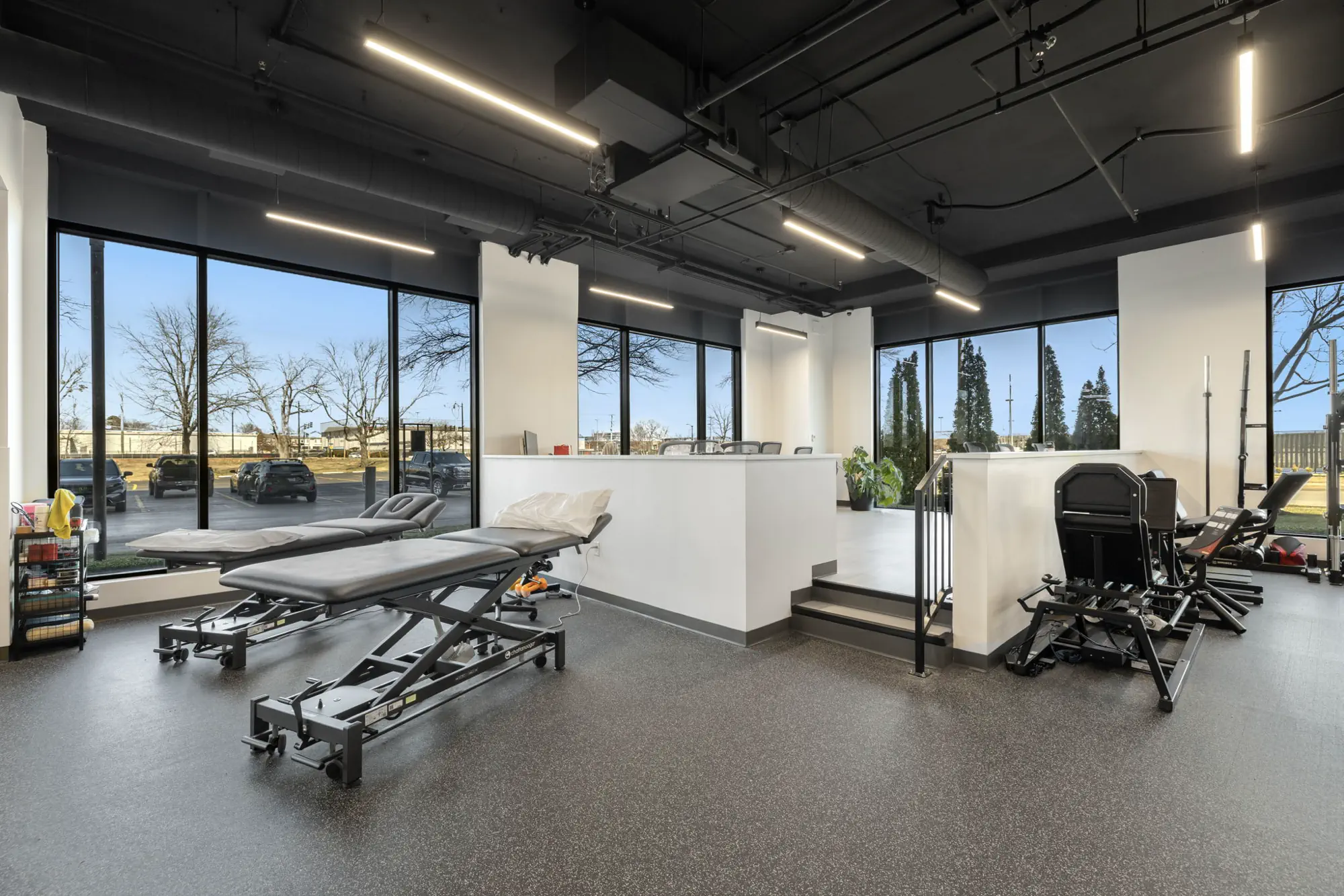 The result spans 24,000 square feet across two floors, housing 28 exam rooms, integrated diagnostic spaces, and a hospitality-forward sports medicine clinic intentionally designed to feel more like a performance facility than a traditional healthcare environment — reducing patient anxiety and fostering collaboration among physicians, therapists, and specialists.